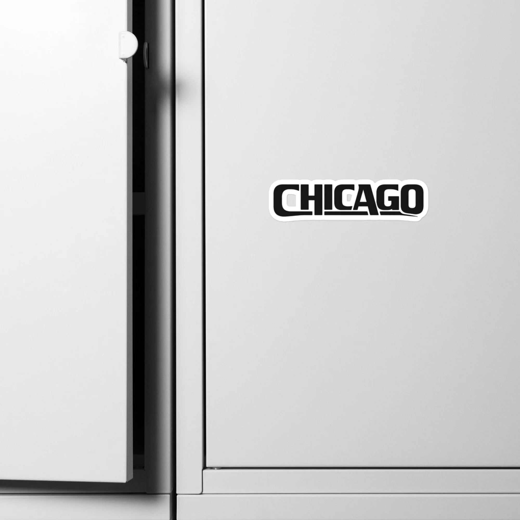 This sticker features a custom typographic rendering of the city name CHICAGO, designed as part of an ongoing series focused on letterform construction rather than illustration or symbolism.